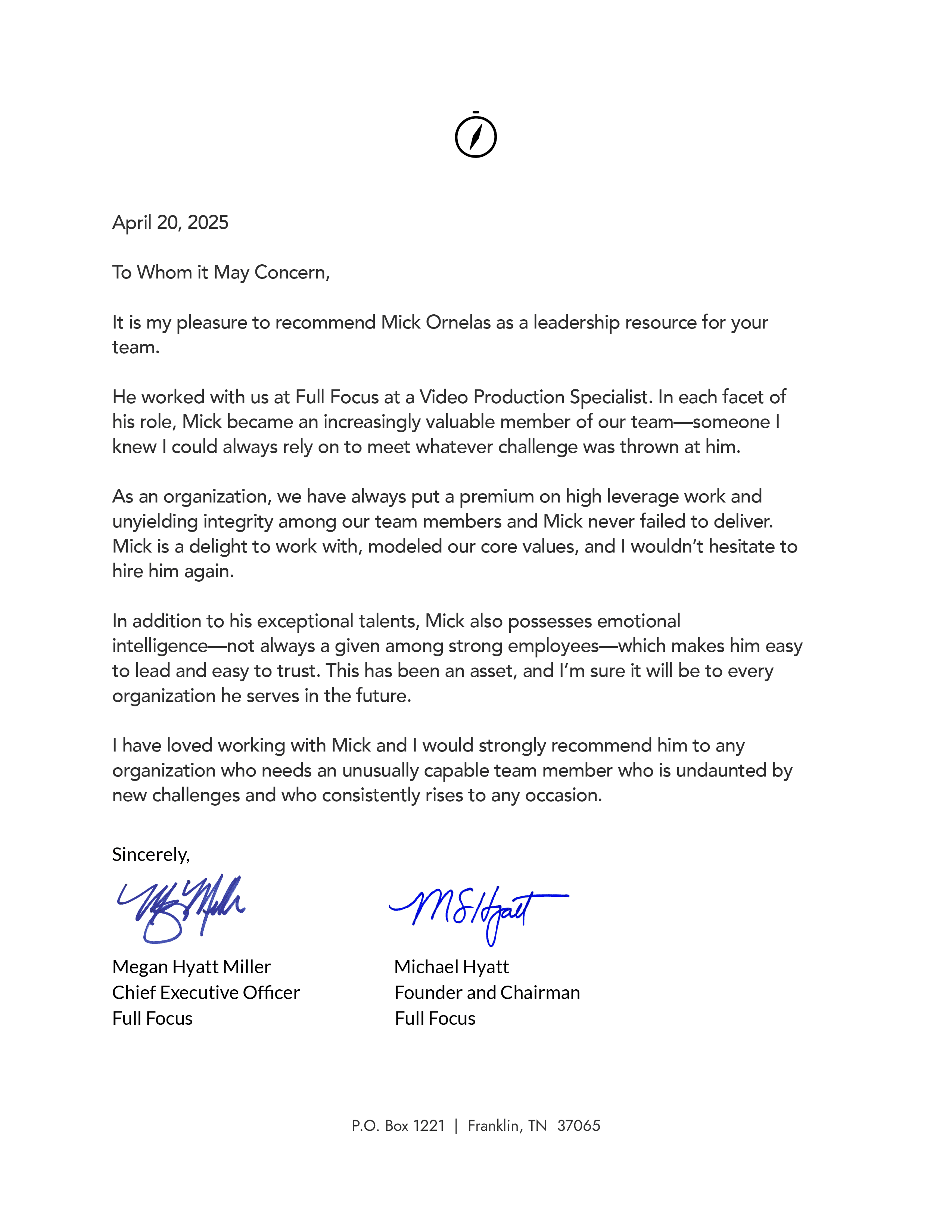 A letter of recommendation.