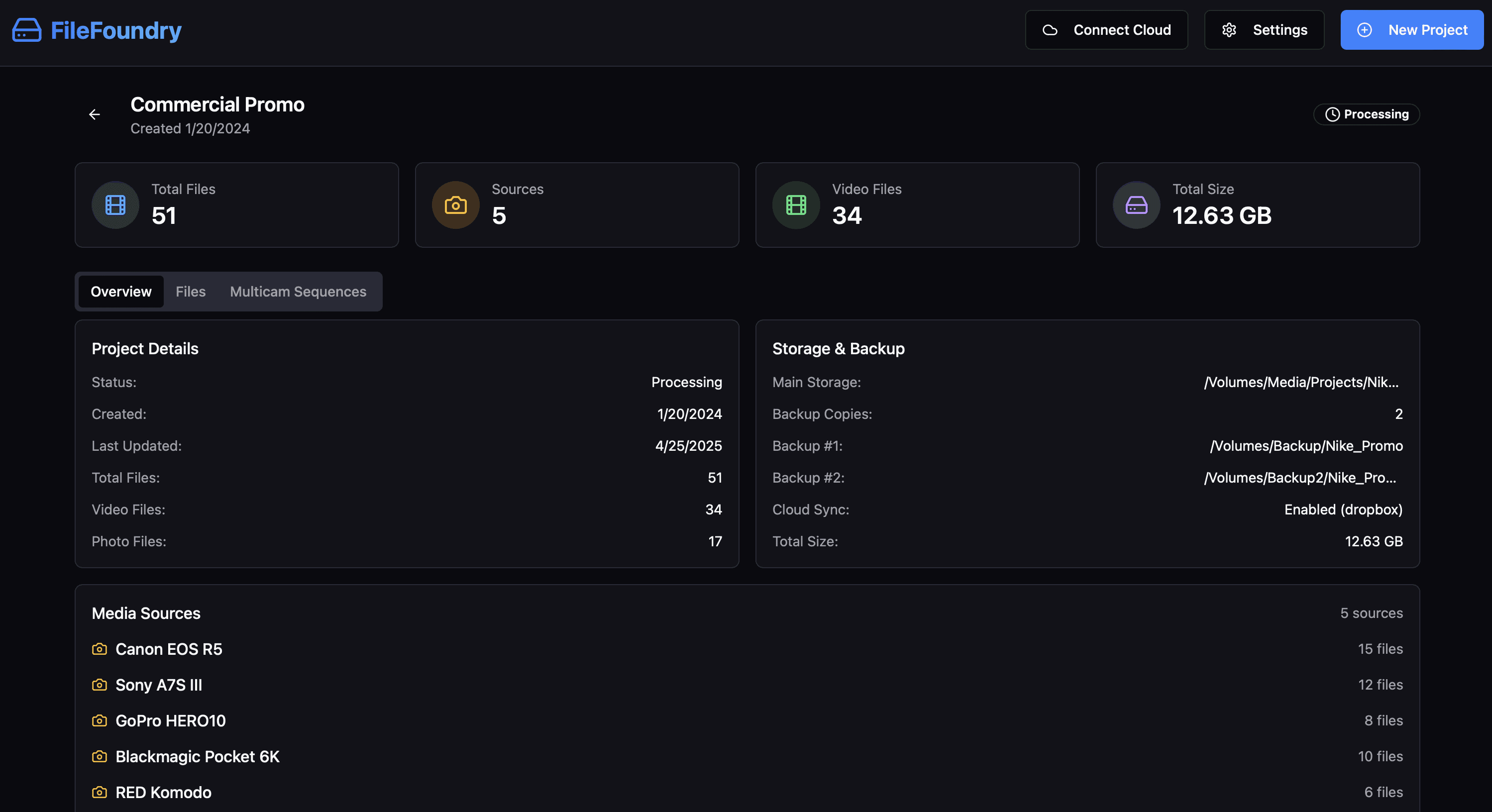 A central hub for backing up, syncing, organizing, and archiving footage from various camera sources